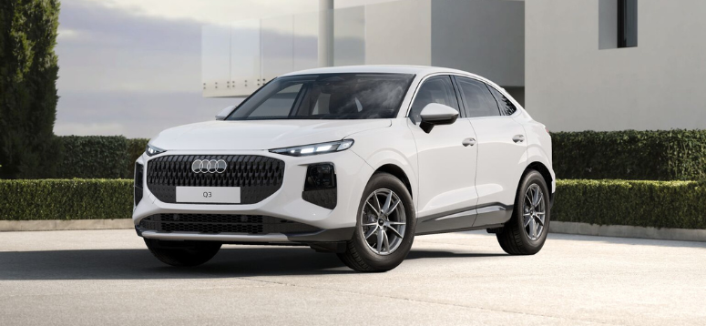 Il SUV compatto Audi Q3 si distingue per la griglia ottagonale e i fari Matrix LED digitali che possono proiettare simboli sulla strada. Misura 4,48 m in lunghezza, 1,85 m in larghezza e 1,58 m in altezza, con bagagliaio da 530 a 1 525 litri. La versione Sportback conferisce un look più dinamico. Con Ekly, puoi scegliere allestimenti e colori con canone fisso senza anticipo obbligatorio.